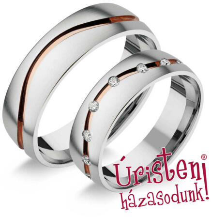Fehér és rozé arany karikagyűrű gyémánt kövekkel.