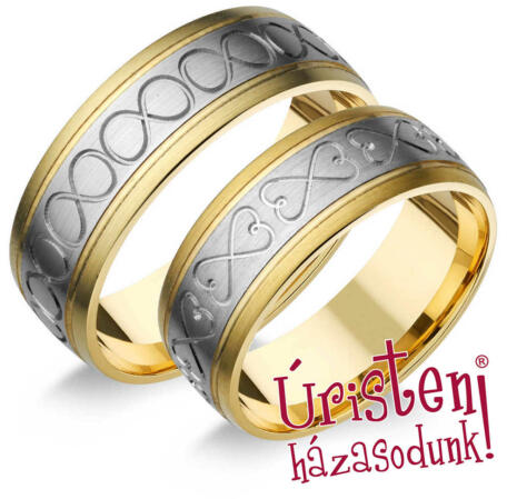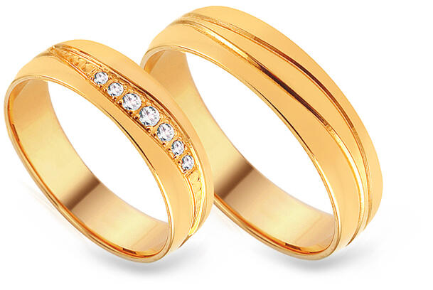 A sárga, aranyból készült jegygyűrűk szélessége 4 - 8 mm, és lekerekített külső és belső profillal rendelkeznek. A gyűrűk magasfokú polírozással kezeltek, és szabálytalan díszes barázdák teszik őket különlegessé. A női gyűrűt ezen felül hét darab tündöklő cirkon díszíti. A jegygyűrűk méretét külön-külön választhatja ki - a női és a férfi gyűrűjé