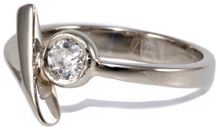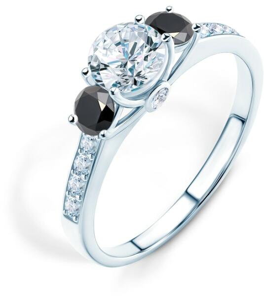 Modern stílusú, kedvelt fazonú, ródiummal bevont, gyémánt kővel ékített, fantázia fehérarany gyűrű.