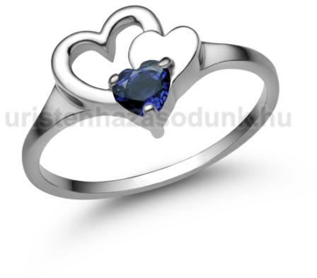 Szív a szívben formájú eljegyzési gyűrű, szív alakú kék zafír kővel.