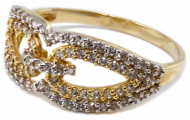 Modern stílusú, kedvelt fazonú, áttört kialakítású, cirkónia kővel ékített, mutatós aranygyűrű.