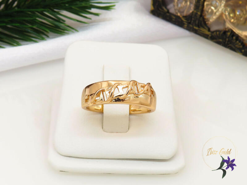 Antiallergén gyűrű különleges díszítéssel, kő nélküli Szin: 18K Szélesség: 6mm A forgalmazott divatékszerek alapanyaga nikkel és ólommentes ezért többnyire nem okoznak allergiás tüneteket, nyugodtan hordhatják fémérzékeny emberek is. Általában nem színezik a bőrt és más divatékszerekhez képest nagyságrendekkel jobb kopásállósággal rendelkeznek. A fehér (ezüst