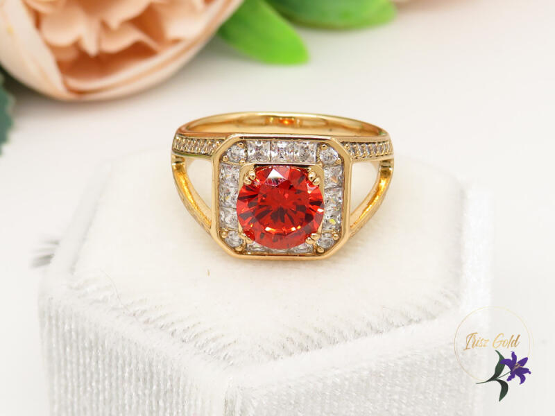 Gold filled piros cirkónia köves gyűrű központi kővel körbe kis fehér cirkóna kövek díszítik Szin: 18K Méret: 13x13mm Kő mérete 7x7mm A forgalmazott divatékszerek alapanyaga nikkel és ólommentes ezért többnyire nem okoznak allergiás tüneteket, nyugodtan hordhatják fémérzékeny emberek is. Általában nem színezik a bőrt és más divatékszerekhez képest nagyságrendekke
