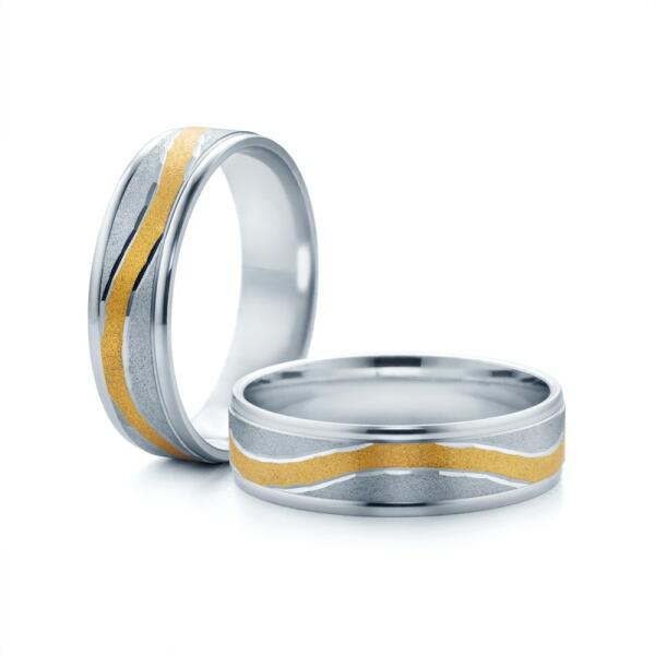 Esküvői karikagyűrűk: kétszínű arany, lapos, 6 mm
