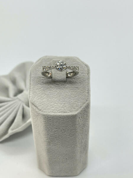 Modellszám: Au25611 Arany karátszáma: 14 K Gyémántok karátszáma: 0,56 ct Gyémántok tisztasága: VS Gyémánt színe: H Gyémánt csiszolása: brilliáns Ékszer súlya: 2,5 gramm Méret: 54 - díjmentesen méretre igazítjuk!