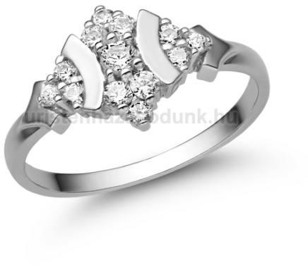 Modern, fehér arany eljegyzési gyűrű 13 darab briliáns csiszolású cirkónia kővel.