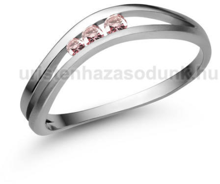 Hullámos fazonú, 3 köves eljegyzési gyűrű rózsaszín zafír kövekkel.