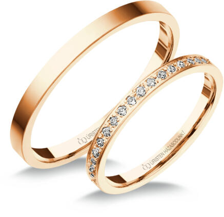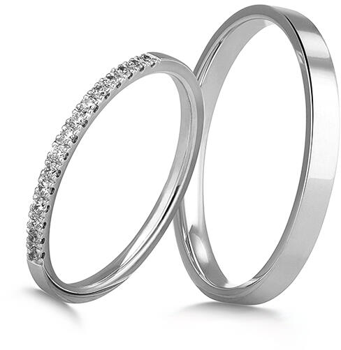 Egyedi fehérarany jegygyűrű kövekkel, szélessége 1,5 és 2,5 mm, modell STOB419