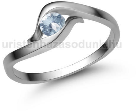 Csavart stílusú, modern eljegyzési gyűrű akvamarin kővel.