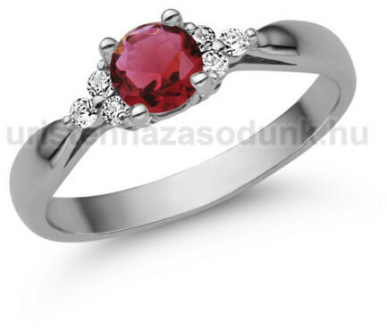 Csodaszép, fehér arany eljegyzési gyűrű 1 nagy rubin kővel és 3-3 darab kísérő cirkónia kővel oldalt.