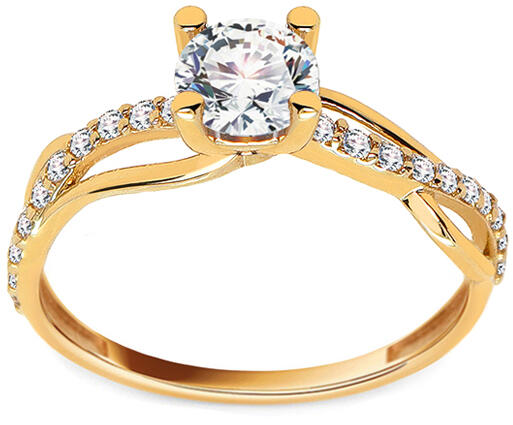 Egyedülálló gyűrű, amely kiemelkedik varázslatos és elegáns külsejének köszönhetően nem marad észrevétlen. A sárga arany finom vonalait sugárzó cirkóniák keretezik, melyek gyönyörű tükröződésekkel világítják meg az ékszert. Válassza ki a gyűrű méretét a rendelkezésre álló méretek közül. Orissa arany eljegyzési gyűrű cirkonokkal, modell IZ13003