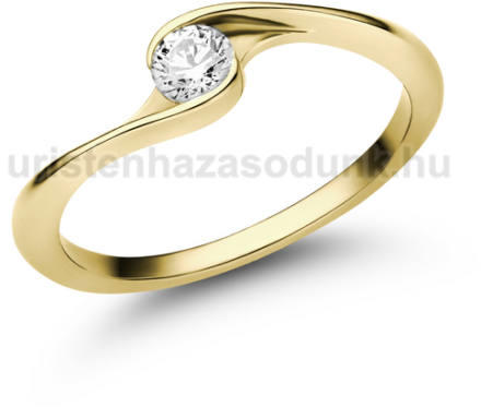 Csavart stílusú, sárga arany eljegyzési gyűrű 0.20 ct-os gyémánt kővel, praktikus foglalatban.