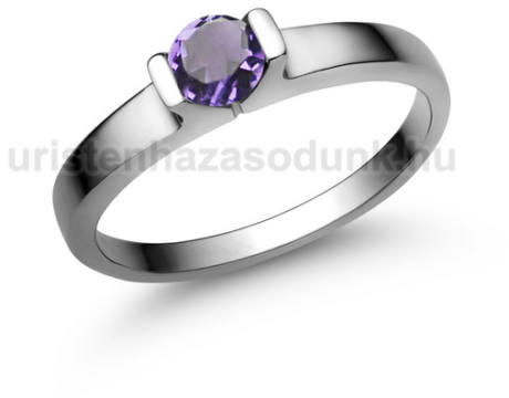 Praktikus viselésű, fehér arany eljegyzési gyűrű 1 darab modern csiszolású ametiszt kővel.