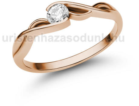 Rozé arany eljegyzési gyűrű, csavart formavilággal, 0.18 ct-os, briliáns csiszolású gyémánt kővel.