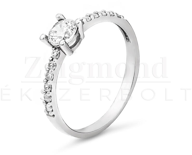Kézzel készített, klasszikus, fehér arany karikagyűrű cirkónia kővel díszítve.
