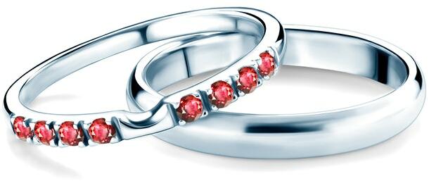The Journey esküvői karikagyűrűk: fehérarany, rubin, félkarikás, 2 mm és 3 mm