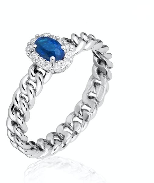 SAVICKI eljegyzési gyűrű: kétszínű arany kék zafírral és fehér zafírokkal