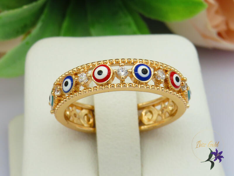 Antiallergén védelmező gyűrű Mati szemekkel Szin: 18K Szélesség :5mm