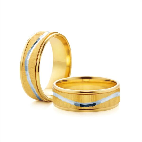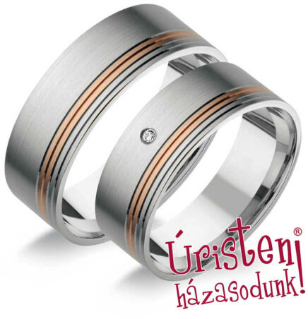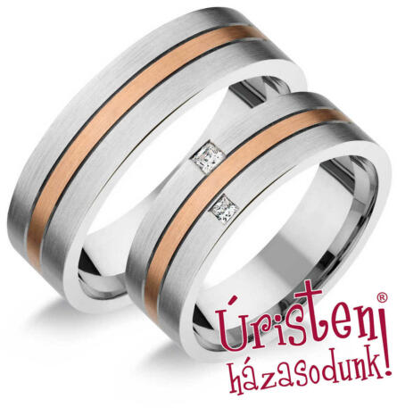 Esküvői karikagyűrűk: kétszínű arany, lapos, 6 mm