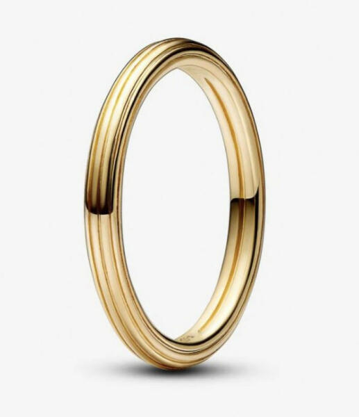 Különleges, selyemfényű, sárga arany karikagyűrű, lapos külső profillal, modern, formatervezett vonalakkal. A női gyűrűt 6 cirkónia kő díszíti.