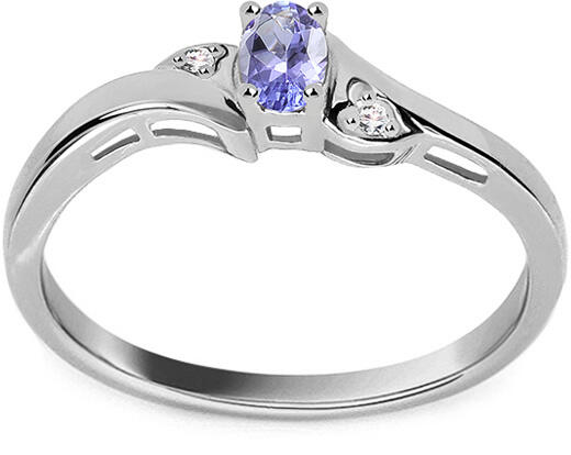 A fehérarany vonalak egy középen elhelyezett 0,200 ct-os tanzanitra hívják fel a figyelmet, amelyet két apró, összesen 0,010 ct értékű gyémánt szegélyez, H színű és SI1 tisztaságú. A gyémántok iZlato® eredetiségi tanúsítvánnyal rendelkeznek