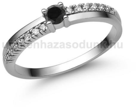 Oldalt köves, modern fehér arany gyűrű fekete gyémánt kővel és cirkónia kövekkel.
