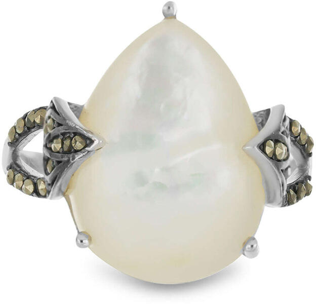 Ezüst Gyűrű 12.41 Karátos Ausztriai Markazittal és Gyöngyházzal, súlya kb. : 6.52 gramm KÓD: Y52526 Ékszer mérete: 21.20 mm x 22.10 mm Minden drágaköves ékszerünk eredetiséget igazoló tanúsítvánnyal érkezik, ami igazolja az ékszer nemesfém eredetiségét, és az ékszerben lévő drágakő karátszámát. Ezüst és arany ékszereink nemesfém jelzéssel, finomságjelzéssel