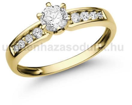 Exkluzív megjelenésű, oldalt köves, sárga arany eljegyzési gyűrű, 0.35 ct-os gyémánt kővel középen.