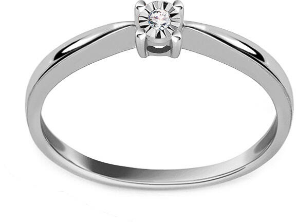Elegáns, fehér arany eljegyzési gyűrű 0.09 ct-os gyémánt kővel, karmos foglalatban.