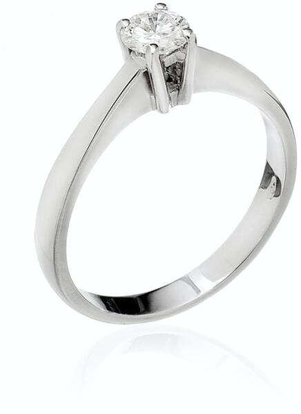 Gyémánt gyűrű készletről. A gyémántot a drágakövek királynőjénék tartják. Nem is csoda, hiszen nemcsak hogy mindenkit elbűvöl ragyogó szépségével, de keménysége és tartóssága is egyedülálló. Az eljegyzési gyűrű 0,50 ct briliáns csiszolású természetes gyémántot tartalmaz, amelyet 14 K fehér arany ölel körül, így a legjobb minőségű ékszerrel lepheted me