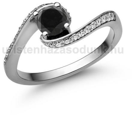 Extravagáns eljegyzési gyűrű, fekete gyémánt kővel a középpontban, további 22 darab cirkónia kővel oldalt.