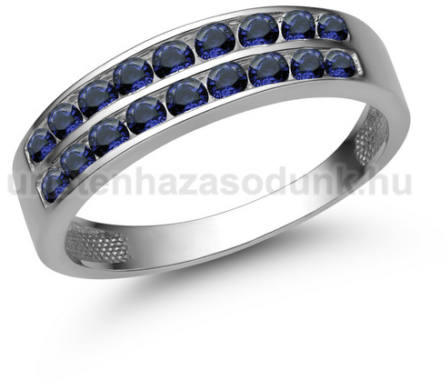 Modern stílusú eljegyzési gyűrű 2 sor kék zafír kővel.