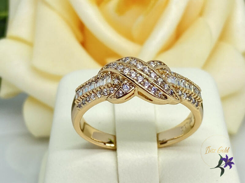 Gyönyörű gazdagon diszitett cirkóniaköves gyűrű Szin: 18K Szélesség:8mm A forgalmazott divatékszerek alapanyaga nikkel és ólommentes ezért többnyire nem okoznak allergiás tüneteket, nyugodtan hordhatják fémérzékeny emberek is. Általában nem színezik a bőrt és más divatékszerekhez képest nagyságrendekkel jobb kopásállósággal rendelkeznek. A fehér (ezüst) színű