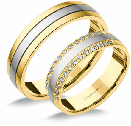 Fehér-sárga arany karikagyűrű gyémánt kövekkel.