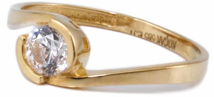 Klasszikus és kedvelt fazonú, cirkónia kővel ékített, magasított foglalat, hullámos szoliter aranygyűrű.