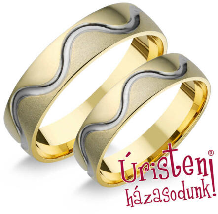 A kombinált, aranyból készült, tökéletes jegygyűrűk szélessége 4 - 8 mm. A karikagyűrűk külső profilja lapos, míg a belső enyhén domború, a kényelmesebb viselés érdekében. A gyűrű túlnyomórészt sárga aranyból készült, csak egy vékony, elegáns fehér vonal díszíti. A női gyűrűt ezen felül egy tündöklő, tiszta cirkon ékesíti. Az ékszer egész felülete ma