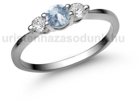 Modern, 3 köves eljegyzési gyűrű, akvamarin kővel és 2 darab kísérő gyémánt kővel.