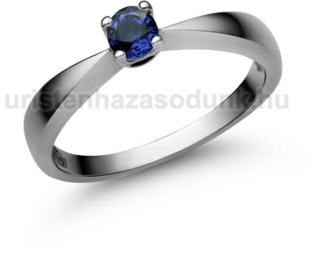 Modern, fehér arany szoliter gyűrű kék zafír kővel.
