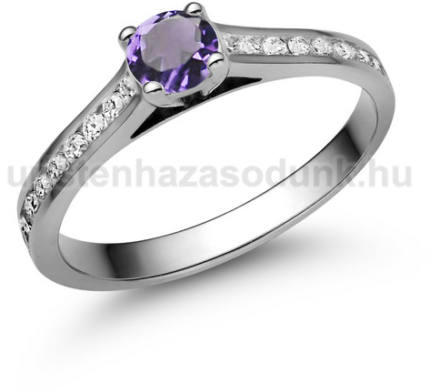 Oldalt köves, modern fehér arany gyűrű ametiszt kővel és cirkónia kövekkel.