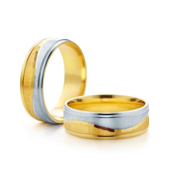 Esküvői karikagyűrűk: kétszínű arany, lapos, 6 mm