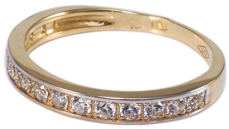 Kedvelt fazonú, egyszerűen elegáns, fejrészén csillogó cirkónia kősorral díszített arany kísérőgyűrű.