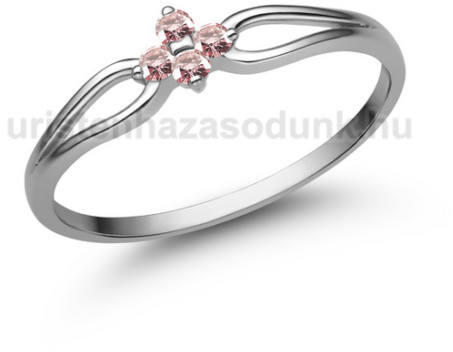 Virág formában elhelyezkedő 4 rózsaszín zafír kővel ékített eljegyzési gyűrű.