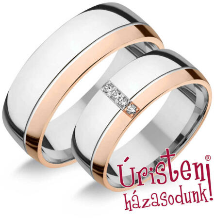 Fehér és rozé arany karikagyűrű gyémánt kövekkel.