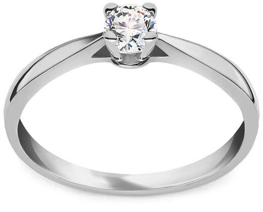 Fehér arany, szoliter gyűrű, 4.25 mm átmérőjű cirkónia kővel, zárt foglalatban.