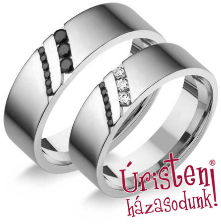 Különleges kövezésű, modern, fehér arany karikagyűrű, fényes felülettel, lapos külső profillal. A gyűrűk ????