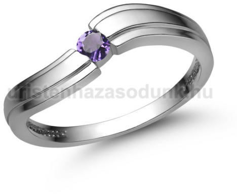 Klasszikus, fehér arany eljegyzési gyűrű modern csiszolású ametisz kővel.