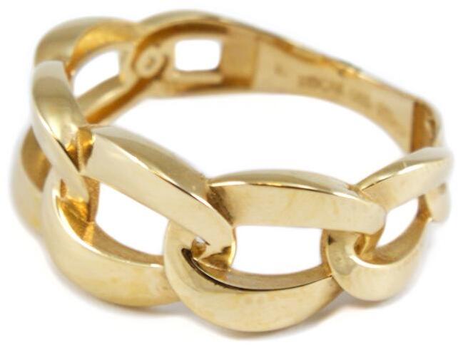 Kedvelt fazonú, ovális láncszemekre emlékeztető sínrésszel ellátott sárga arany gyűrű.
