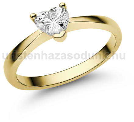 Szív formájú cirkónia köves, sárga arany eljegyzési gyűrű.