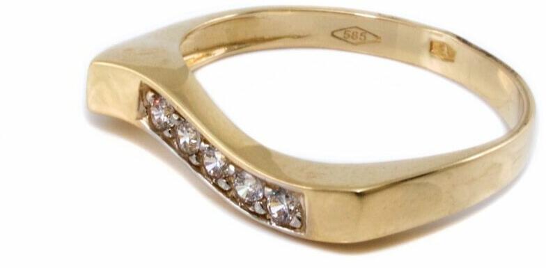 Modern stílusú, kedvelt fazonú, cirkónia kővel ékített, hullámos szögletes aranygyűrű.