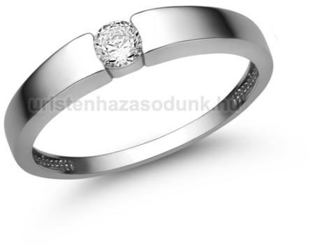 Praktikus viselésű, fehér arany szoliter gyűrű fehér zafír kővel.